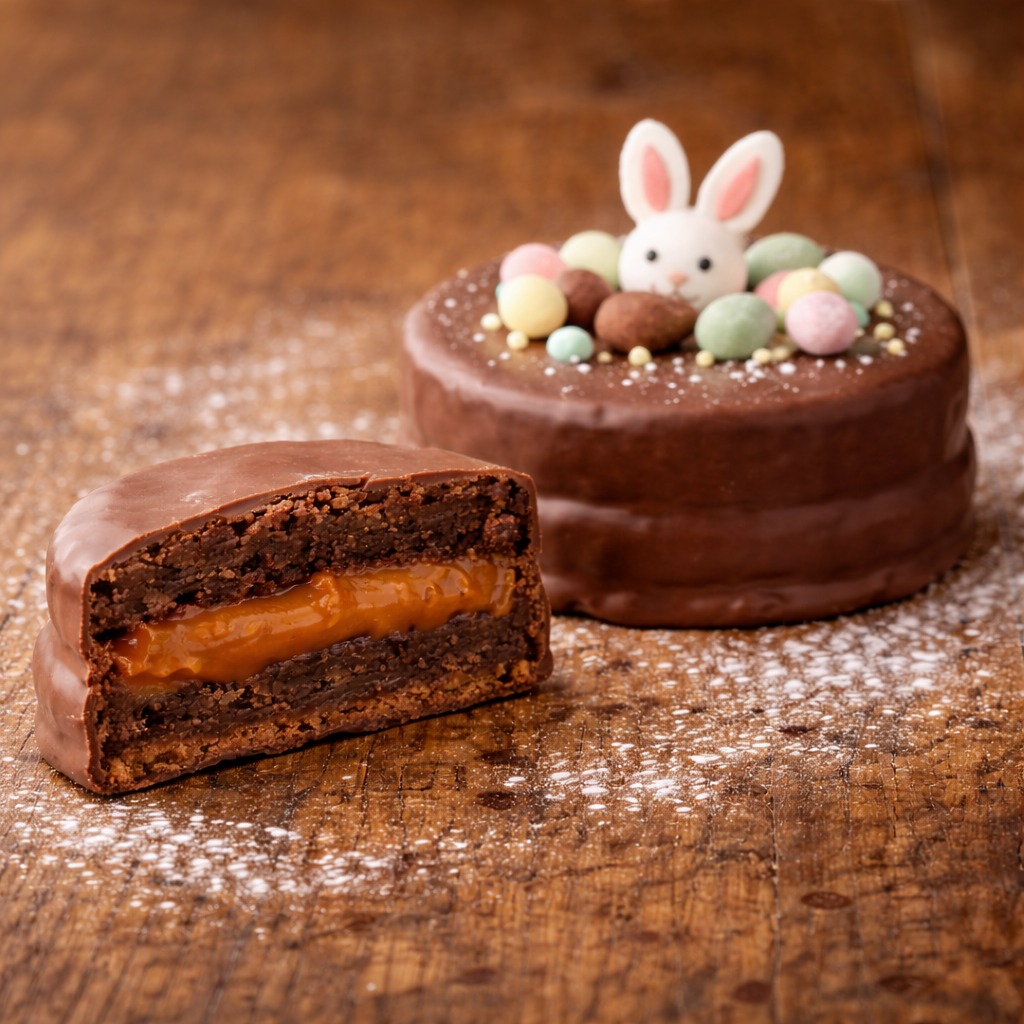 Nesta aula prática, você vai aprender a preparar alfajores artesanais perfeitos para a Páscoa, desde a massa até a montagem e finalização. Serão abordadas técnicas essenciais para um alfajor equilibrado, com recheio cremoso e acabamento profissional, além de orientações sobre conservação, validade e precificação. Uma aula pensada para quem deseja produzir para vender ou incluir um clássico irresistível no cardápio de Páscoa. Imagem meramente ilustrativa.