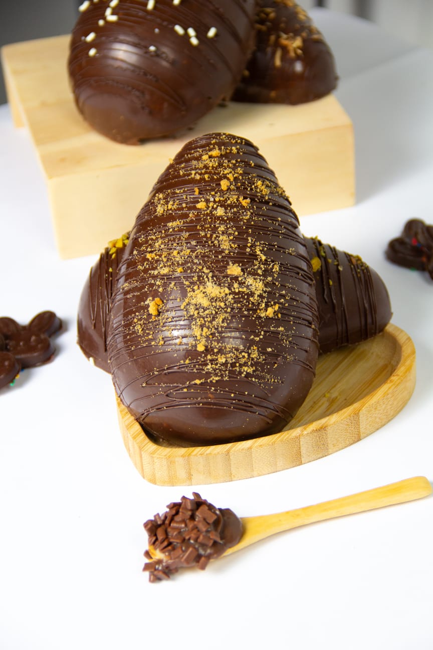 A Páscoa é a época de ouro da confeitaria, e nesta aula você vai aprender a produzir ovos de Páscoa crocantes que são verdadeiros campeões de vendas. Serão ensinadas técnicas essenciais de temperagem, combinações de recheios criativos e o uso correto do chocolate nobre Nestlé Professional para garantir qualidade, brilho e textura perfeitos. Você também vai descobrir diferentes tipos de crocantes e como aplicá-los de forma estratégica para valorizar o produto final e encantar seus clientes. Uma aula completa para elevar suas produções e vender mais na Páscoa. Imagem meramente ilustrativa.