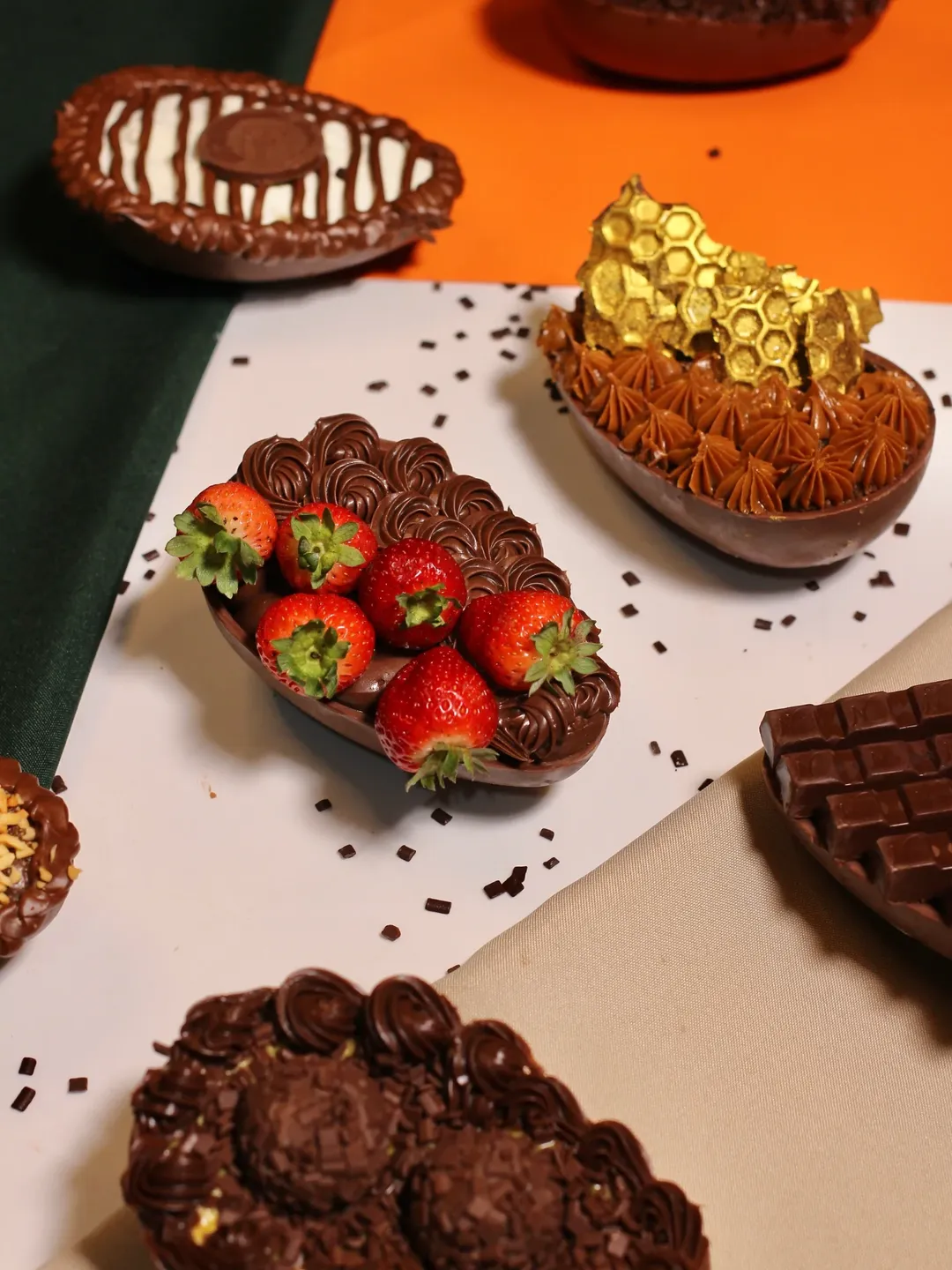 Prepare-se para a Páscoa com um dos Faça e Venda mais queridos da confeitaria. Aprenda a produzir ovos de colher decorados, com recheios cremosos, combinações clássicas e sabores irresistíveis que vendem muito o ano todo. Nesta aula, você vai dominar técnicas profissionais de preparo, montagem e decoração, além de receber dicas práticas de finalização e embalagem para valorizar o produto, encantar seus clientes e aumentar a lucratividade. Imagem meramente ilustrativa.