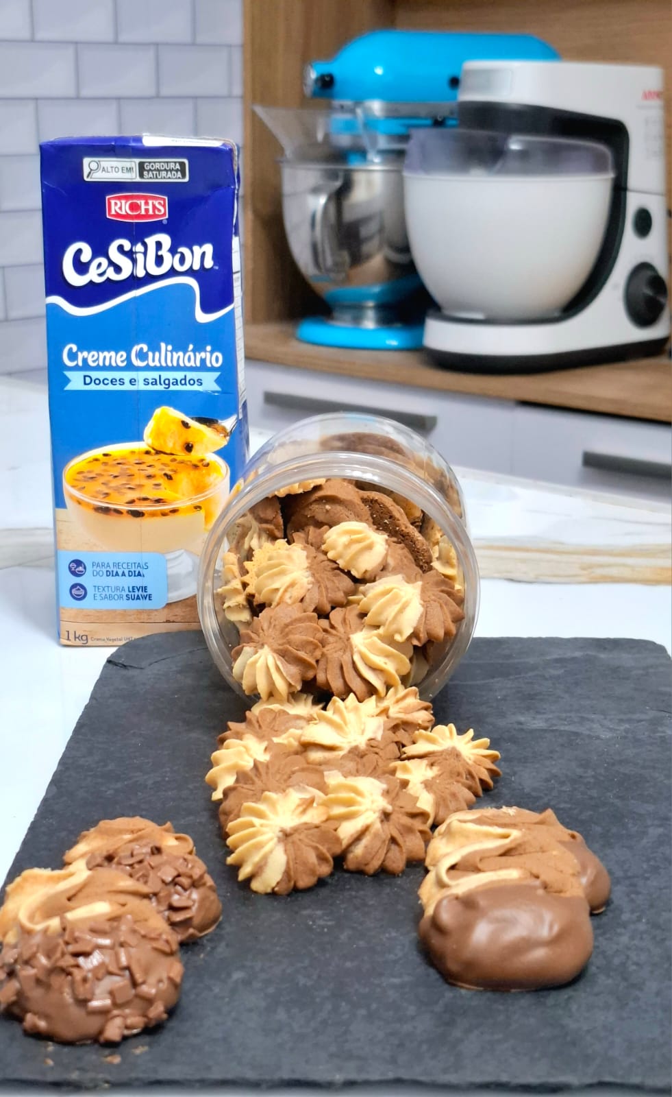 Aprenda a preparar um biscoito amanteigado de chocolate e café, com textura delicada que derrete na boca e um sabor marcante que conquista já no primeiro pedaço. Você aprenderá a trabalhar uma massa equilibrada, garantindo maciez, boa estrutura e um resultado final perfeito. Além da receita, teremos demonstrações especiais com bicos de confeitar, mostrando técnicas de aplicação, acabamentos e detalhes que valorizam ainda mais o visual dos biscoitos. Uma aula cheia de técnica, sabor e criatividade, ideal para quem quer aprimorar suas produções e agregar valor aos seus produtos. *Imagem meramente ilustrativa.*